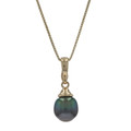 Yellow Gold Tahitian Pearl Solitaire Enhancer Pendant Necklace - 10k