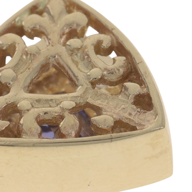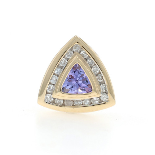 Yellow Gold Tanzanite Diamond Halo Pendant - 14k Trillion .58ctw