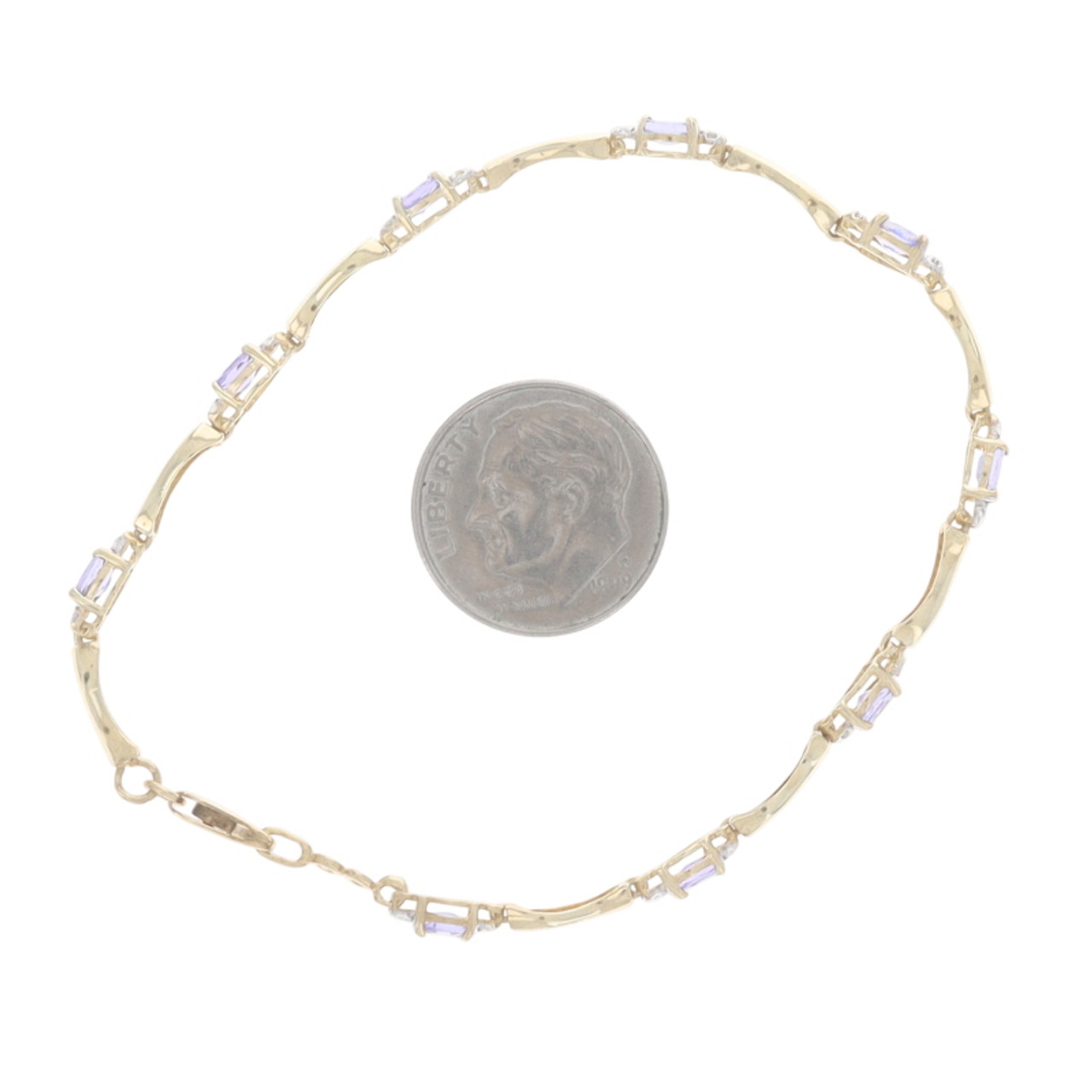 Yellow Gold Tanzanite Diamond Link Bracelet 7" - 10k Oval 3.35ctw