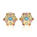 Yellow Gold Topaz Peridot Amethyst Lg Cluster Stud Earrings 14k 4.24ctw Pierced