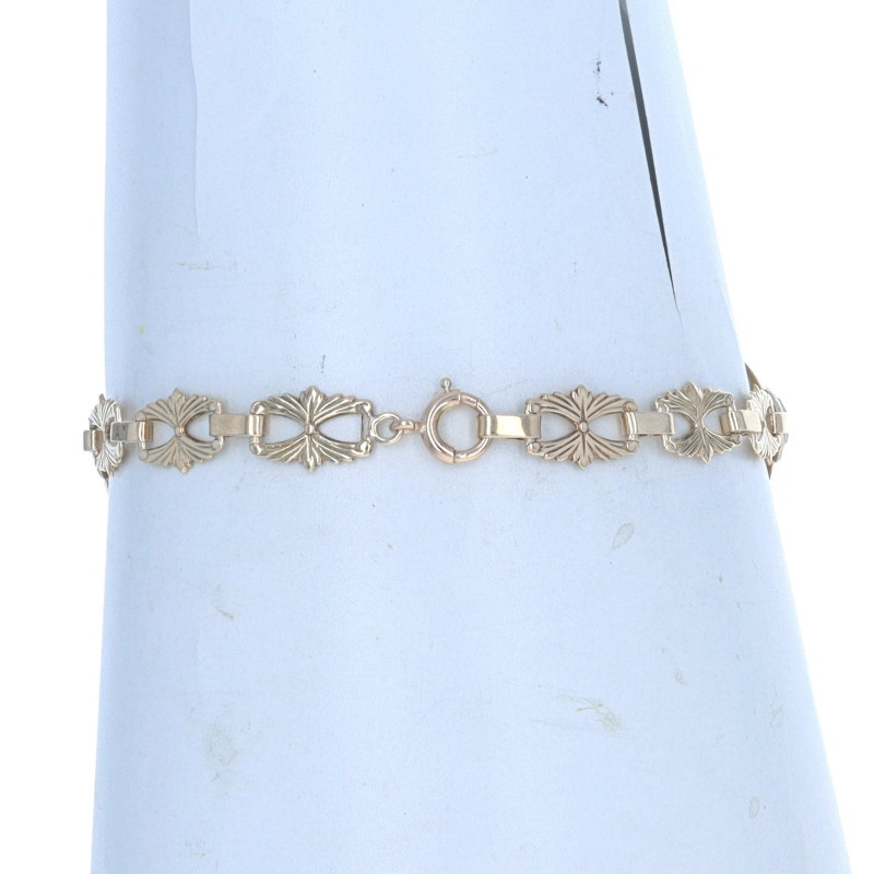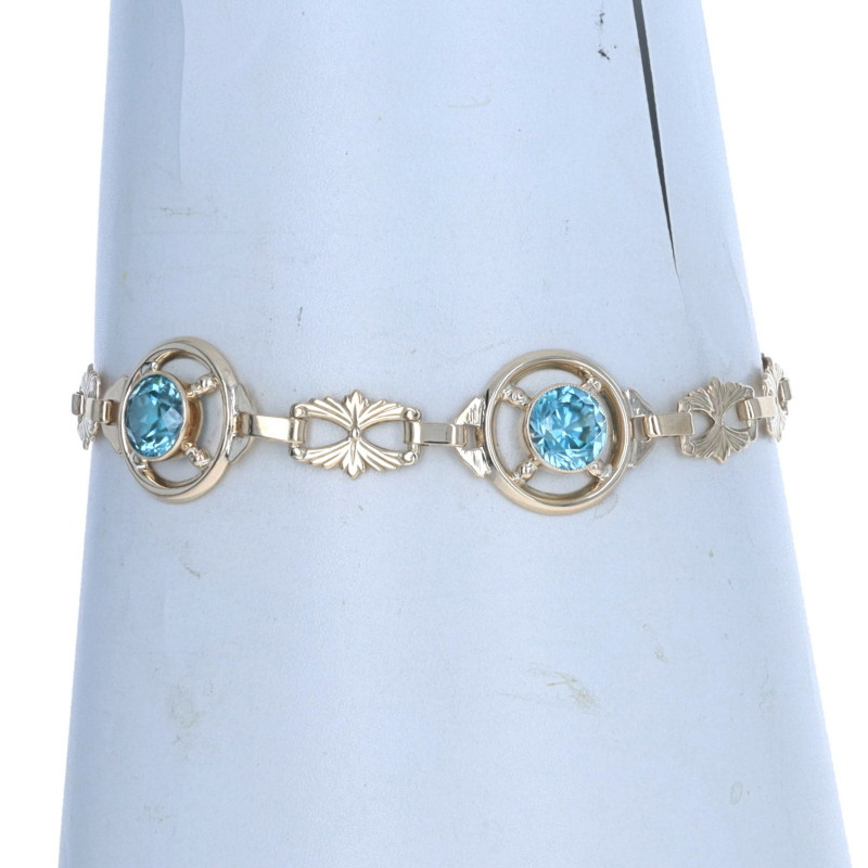 Yellow Gold Zircon Retro Three-Stone Station Link Bracelet 6 3/4" 10k Rnd5.25ctw