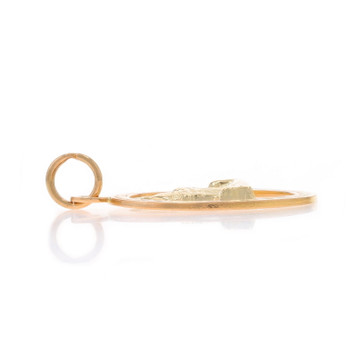 Metal Content: 9k Yellow GoldTheme: Westminster Abbey, London, EnglandMeasurementsTall (from stationary bail): 5/8" (15.2mm)Wide: 21/32" (16mm)Interior of top bail opening measures (east to west): 3.4mmWeight: 3.6 GramsStamps: 9, .375, hallmarks, PP...