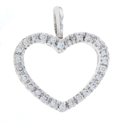 Diamond Heart Pendant - 14k White Gold Round Brilliant .12ctw