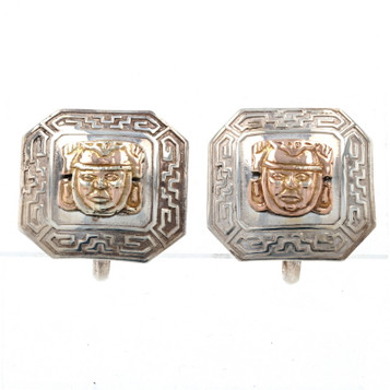 South American Tribal Art Earrings - Sterling Silver & 18k Gold Non-Pierced Peru