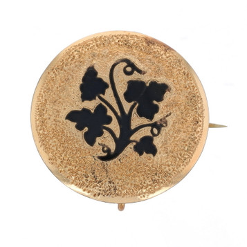 Gold Filled Enamel Victorian Ivy Circle Brooch/Pendant Antique Mourning Pin