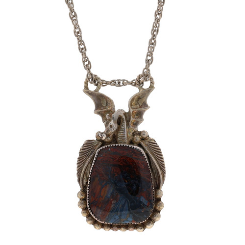 Native American Gayle Two Hawks Jasper Dragon Solitaire Necklace 23"Sterling 925