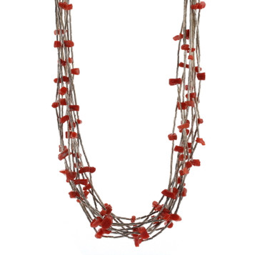 Native American Liquid Silver Beaded Ten-Strand Necklace 23 3/4" Sterling Silver