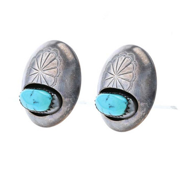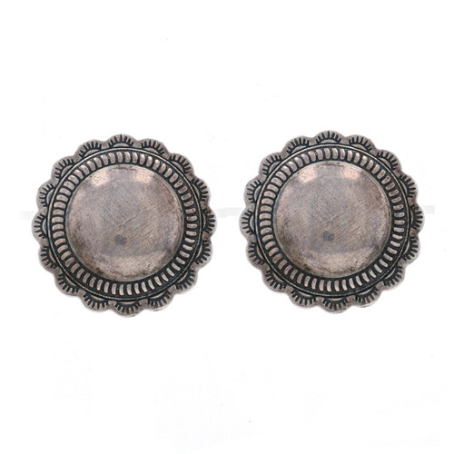 Native American Navajo Large Dome Stud Earrings - Sterling 925 Etched Scallop