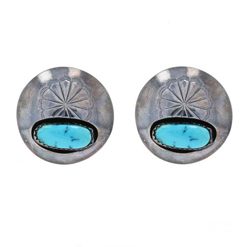Native American Turquoise Large Stud Earrings - Sterling 925 Etched Dome Pierced