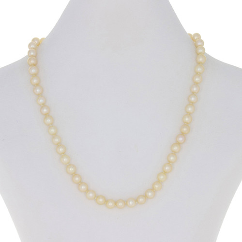 Timeless elegance defined! This necklace showcases luminous cultured pearls that have been freshly restrung on a durable knotted cord. Crafted in 18k white gold, the necklace’s bow clasp is graced with a sparkling diamond and ornate milgrain work.