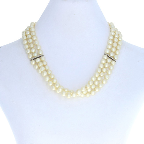Sterling Faux Pearl, Simulated Sapphire, & Rhinestone Vintage Necklace 13 1/2"