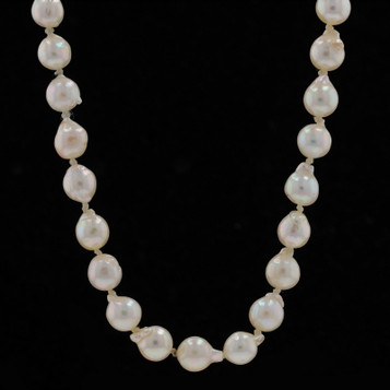Yellow Gold Freshwater Pearl knotted Strand Necklace 23 1/2" -14k Fishhook Clasp