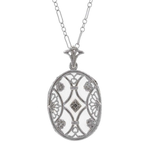 New Glass Pendant Necklace Sterling Silver Diamond Filigree Deco Style