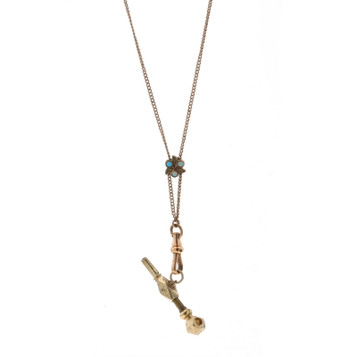 Opal Victorian Slide Charm Watch Key Winder Necklace 28" Round Cabochon Antique