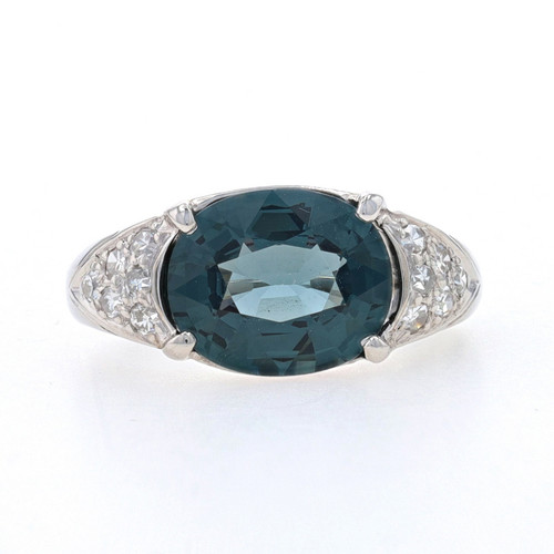 Palladium Spinel & Diamond Vintage Ring - Oval 3.68ctw East-West Size 4 1/2