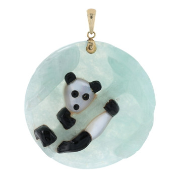 Panda Pendant - 14k Gold Carved Jadeite, Mother of Pearl, & Black Nephrite Jade
