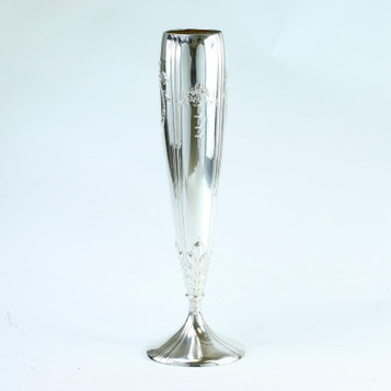 This vintage piece has an oxidized finish, patina and surface scratching.