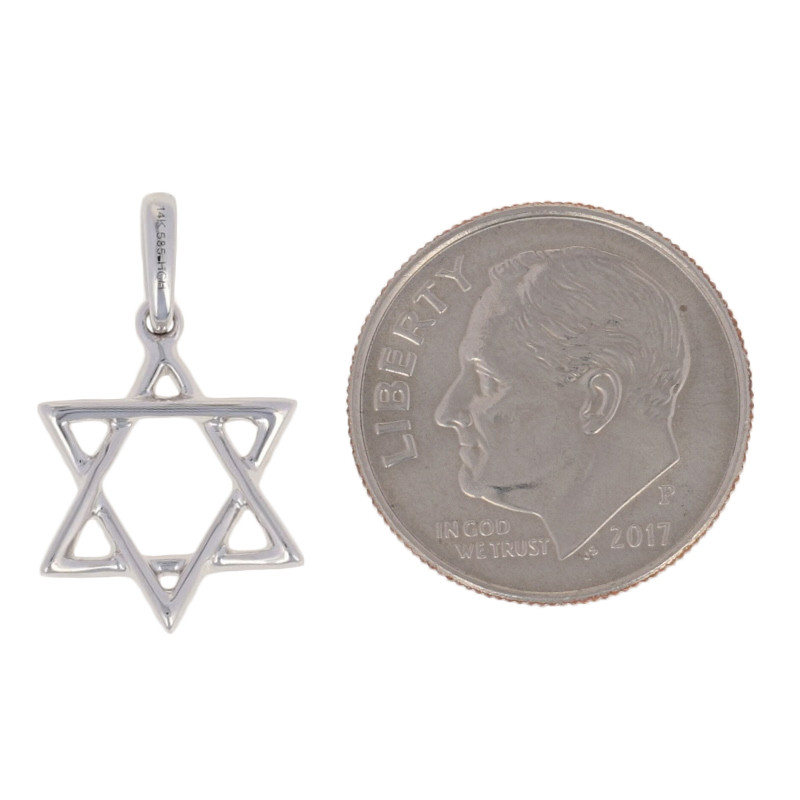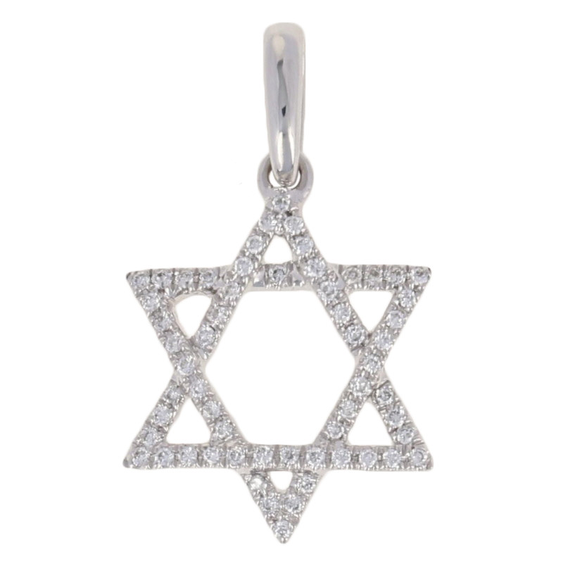 NEW .10ctw Round Brilliant Diamond Star of David Pendant - 14k White Gold Faith