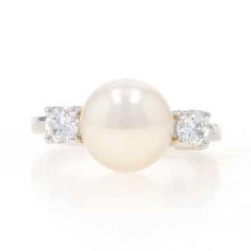 Platinum Akoya Pearl & Diamond Ring - Round Brilliant .34ctw
