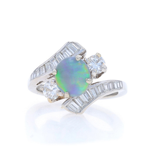 Platinum Black Opal & Diamond Bypass Ring - Oval Cabochon 1.52ctw