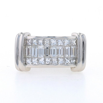 Platinum Diamond Cluster Cocktail Band Baguette & Princess 1.60ctw Ring Sz 5 1/2