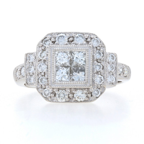 Platinum Diamond Cluster Halo Ring 950 Princess Cut 1.00ctw Miligrain Engagement