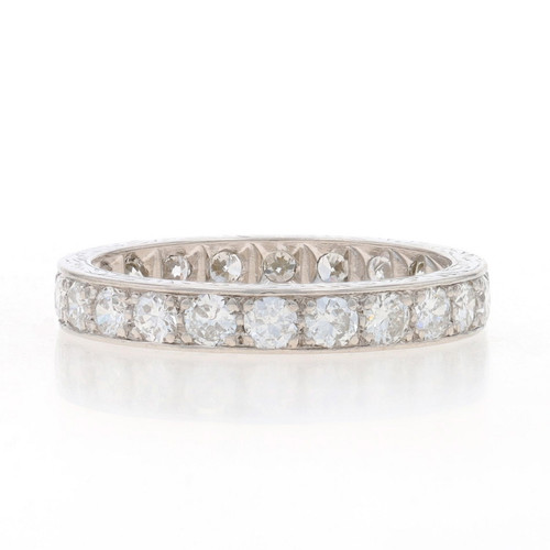 Platinum Diamond Eternity Wedding Band Transitional Rnd 1.54ctw Etched Ring Sz 6