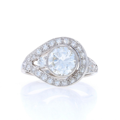 Platinum Diamond Retro Loop Halo Ring - Round Brilliant 1.55ctw Vintage