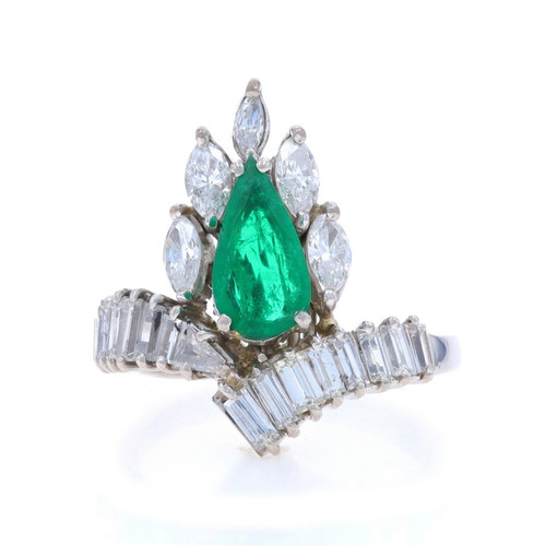 Platinum Emerald & Diamond Ring - Pear Cut 2.84ctw