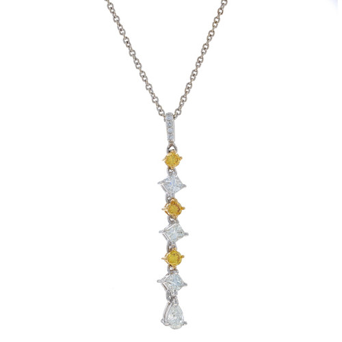 Platinum & Gold Yellow Diamond Journey Necklace 16 1/2" 14k Pear 1.10ctw Treated