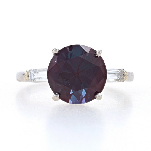 Platinum Lab-Created Alexandrite Diamond Engagement Ring - Round 3.72ctw Sz 5