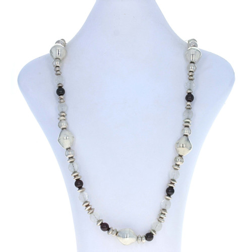 Quartz & Onyx Beaded Necklace 34 1/2" - Sterling Silver Lobster Claw Clasp Fine