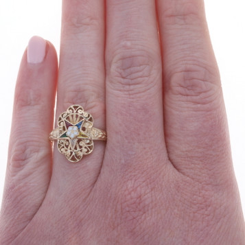 Metal Content: 14k Yellow GoldStone InformationCultured PearlStyle: Solitaire BypassMeasurementsFace Height (north to south): 1/2" (12.2mm)Rise Above Finger: 11/32" (8.7mm)Weight: 3.5 GramsStamps: 14kCondition: Pre-OwnedProfessionally cleaned, polished,...