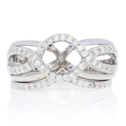 NEW Semi-Mount Engagement Ring & Wedding Band - 14k Gold 5mm Center Halo .50ctw