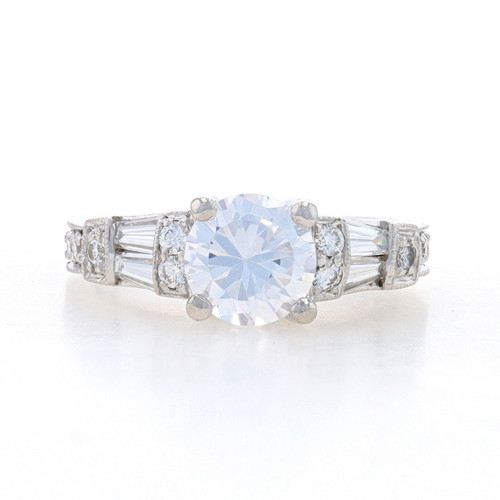 Platinum Semi-Mount CZ & Diamond Engagement Ring Round fits~7mm Milgrain Sz5 3/4