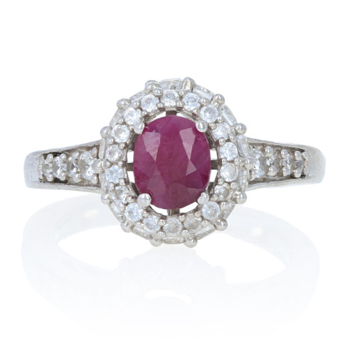 Sterling Silver Ruby & White Zircon Flower Halo Ring - 925 Oval Cut 2.65ctw