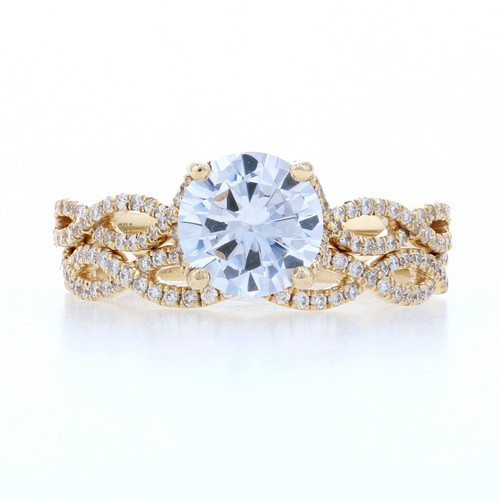 Yellow Gold Semi-Mount Engagement Ring & Wedding Band - 14k 7mm Center .39ctw