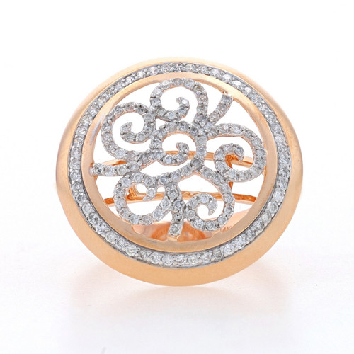 Rose Gold Diamond Cluster Cocktail Halo Ring 14k .60ctw Floral Vine Scrollwork