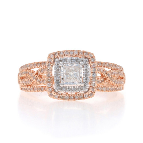 Rose Gold Diamond Double Halo Engagement Ring - 10k Princess & Single Cut 1/2ctw