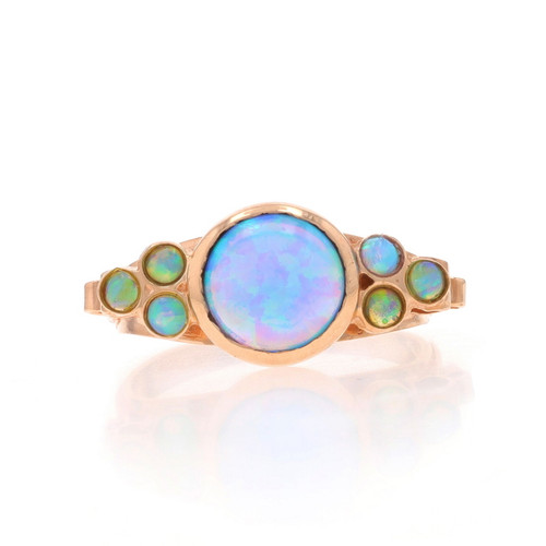 Rose Gold Lab-Created Opal Ring - 14k Round Cabochon 1.11ctw Bezel Set