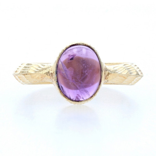 Sterling Amethyst Solitaire Ring - 925 Gold Plated Oval 1.75ct Knife-Edge Size 5