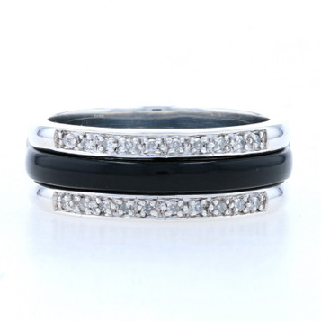 Sterling & Black Titanium Cubic Zirconia Band 925 Rnd.10ctw Wedding Ring Sz7 3/4