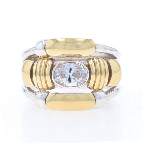 Sterling Cubic Zirconia Cocktail Solitaire Ring 925 18kGold Oval 1.32ctEast-West