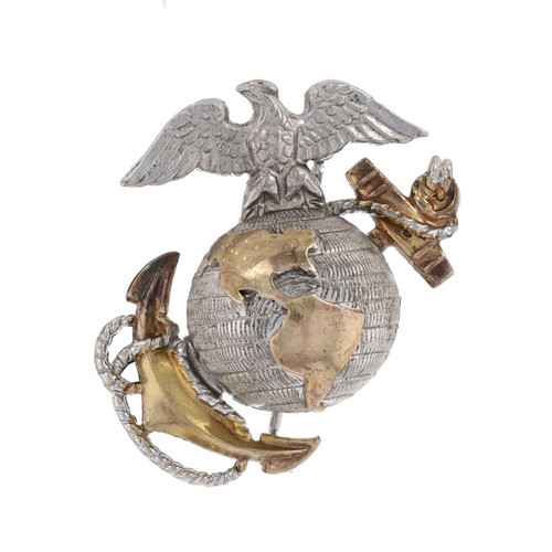 Sterling & Gold Filled WWII Vintage US Marine Officer Dress Pin Collar Insignia