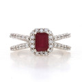 Sterling Lead Glass Filled Ruby & White Sapphire Halo Ring - 925 Emerald Cut