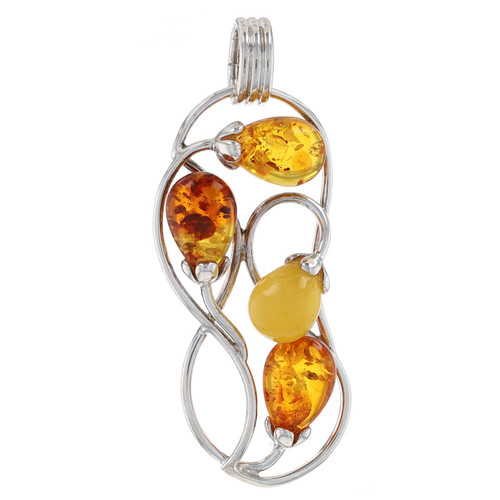 Sterling Silver Amber Cluster Pendant - 925 Botanical Scrolling Vine
