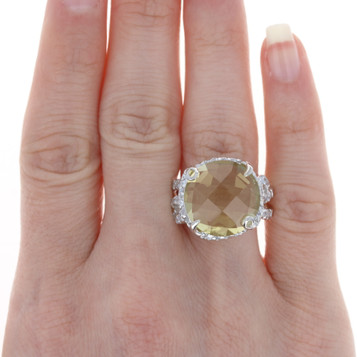 Sterling Silver Cubic Zirconia & Green Enamel Ring - 925 Round 2.57ctw Size 7