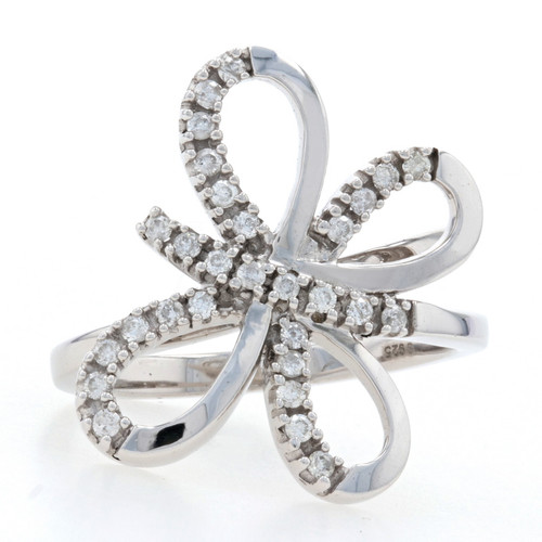 Sterling Silver Diamond Butterfly Ring - 925 Round Cut .37ctw Size 7 1/4