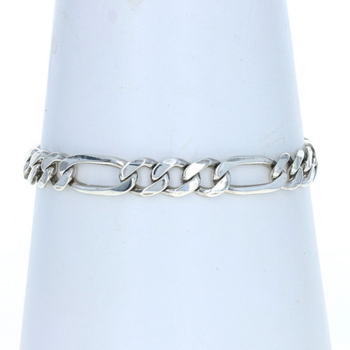 Sterling Silver Diamond Cut Figaro Chain Men's Bracelet 9" - 925 Italy