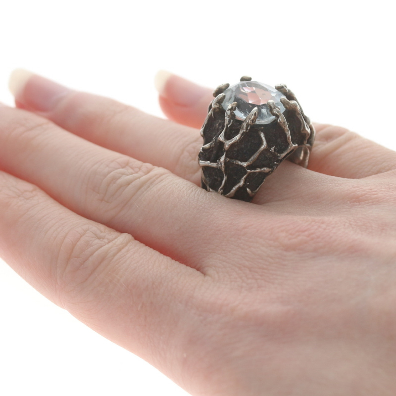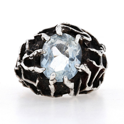 Sterling Silver Goshenite Modernist Cocktail Solitaire Ring - Oval 7.80ct Vintage Size 9